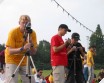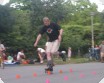 Там обнаружилась крытая хоккейная коробка, которую предполагалось использовать как резервную площадку в случае дождя, а на улице нас ждал отличный, гладкий асфальт с хорошим сцеплением, что особенно важно для слалома. Оставалось только молиться на погоду, потому что покрытие под крышей было довольно скользким и вело себя непредсказуемо под колесами. На территории стадиона мы также нашли кусок крашеного мокрого асфальта и начали веселиться по полной программе, выделывая различные слайды метров по 25 каждый :). Вечером вся компания отправилась в парк на встречу с французскими спортсменами, с которыми мы познакомились и крепко подружились еще на прошлогоднем финале. На встрече все отметились неспортивным поведением ;). Ближе к ночи начался дождь, и ничего не оставалось делать как идти спать.