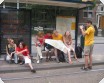 Найденный в скором времени парк поразил нас обилием народа. Если бы на Поклонной Горе, где мы постоянно тренируемся, люди с такой периодичностью ходили или катались на велосипедах по слаломной дорожке, то тренировки превратились бы в бои за кусок свободного пространства. Покатавшись часок, я понял, что надо дать отдохнуть травмированной ноге, и до соревнований ролики больше не одевал, а ребята катались на дорожке по полной программе. Один из голландцев грустно заметил: "Наверное, я участвовать не буду, мест для квалификации всего четыре, а русских приехало пятеро, эх, шансов у меня нет…"